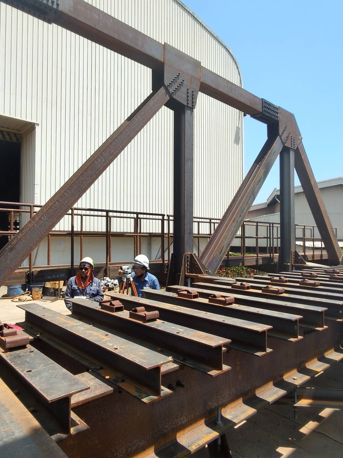 Fabrication and Pre-assembly Through Truss Bridge (TT) span 35m Wt. 95,000 kgs. สถาณีบ่อนอก จ.ประจวบคีรีขันธ์ Kingdom of Thailand Ministry of Transport State Raiway Company West Coast Engineering Co.,Ltd